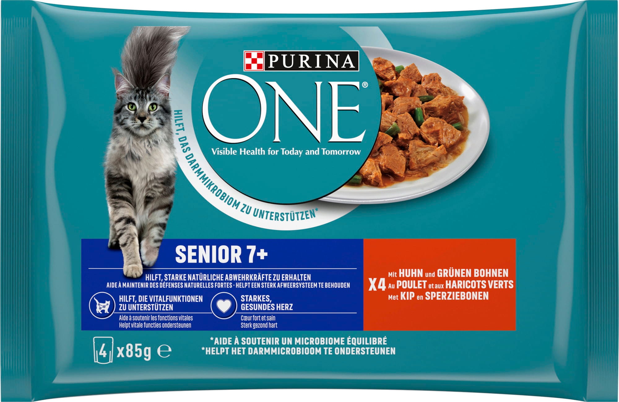 PURINA ONE Mokré krmivo s kuracím mäsom a zelenými fazuľkami Senior 7+, 4 x 85 g, 340 g