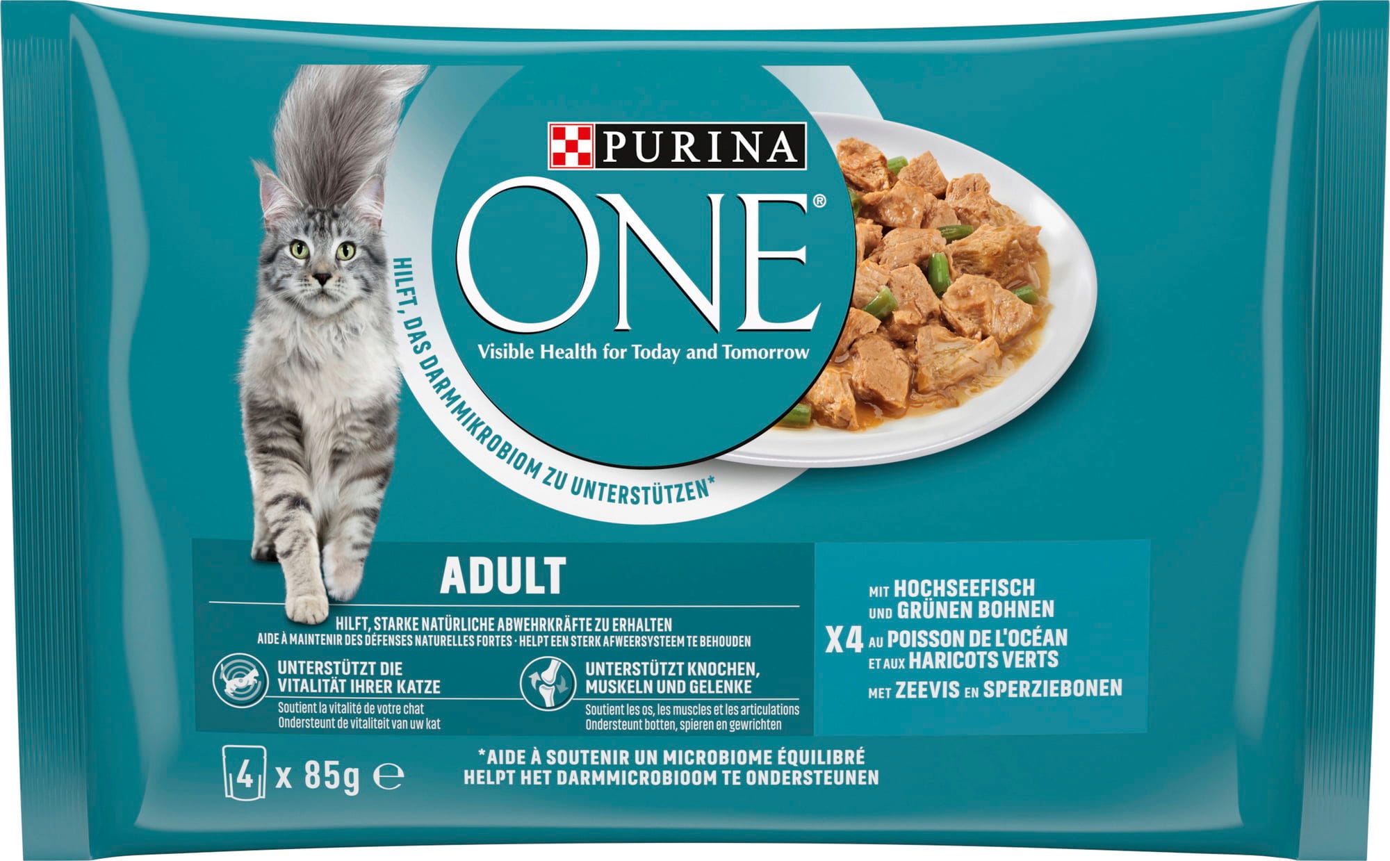 PURINA ONE Mokré krmivo s morskými rybami a zelenou fazuľkou 4 x 85 g, 340 g