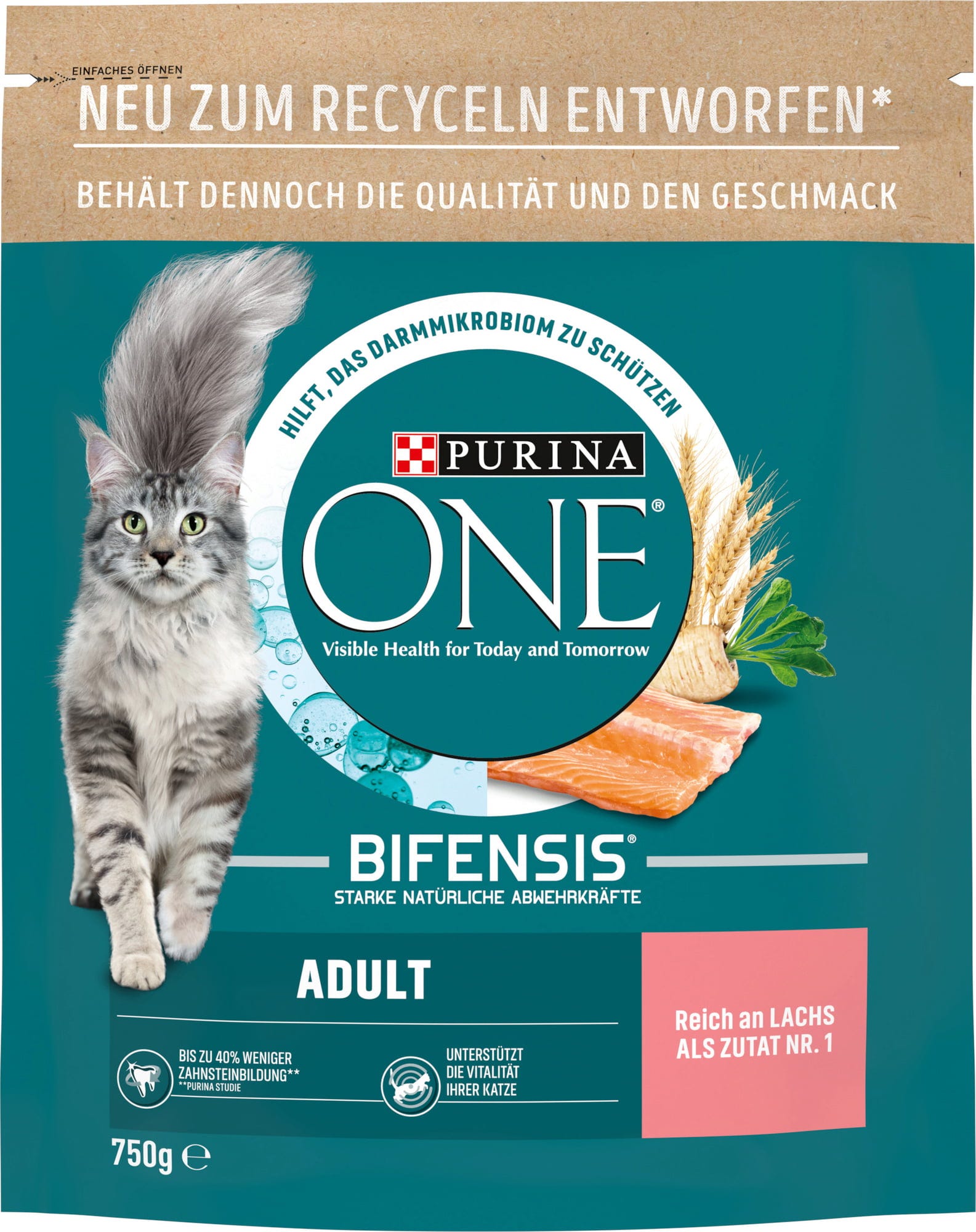 Suché krmivo Adult s lososom od PURINA ONE je vyrobené z vybraných surovín, ktoré vašej mačke poskytnú všetko, čo potrebuje pre každodenný život. Uzatvárateľné balenie umožňuje jednoduché dávkovanie a uchováva chuť vnútri. Vaša mačka si zamiluje skvelú chuť a vy si môžete byť istí, že dostane prvotriednu výživu.