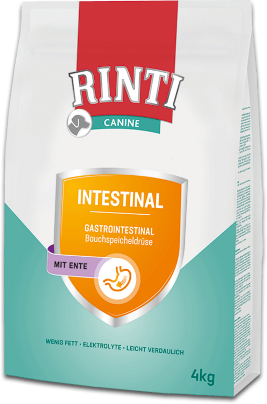 Rinti Canine Intestinal bolo špeciálne vyvinuté pre psov, ktorí trpia gastrointestinálnymi ochoreniami pankreasu alebo žalúdočno - črevného traktu. Ide o dobre stráviteľné diétne suché krmivo s nízkym obsahom tuku a zvýšeným obsahom elektrolytov (sodík, horčík, vápnik, draslík), čo pomáha kompenzovať poruchy trávenia a exokrinnú pankreatickú insuficienciu, ako aj zmierňovať poruchy vstrebávania v črevách.