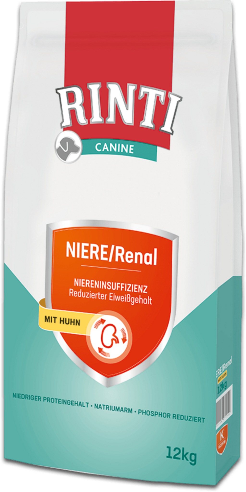 Suché krmivo Rinti Canine obličky/Renal bolo vyvinuté tak, aby psom s chronicky alebo akútne obmedzenou funkciou obličiek poskytovalo chutnú potravu, ktorá je zároveň prispôsobená ich potrebám.