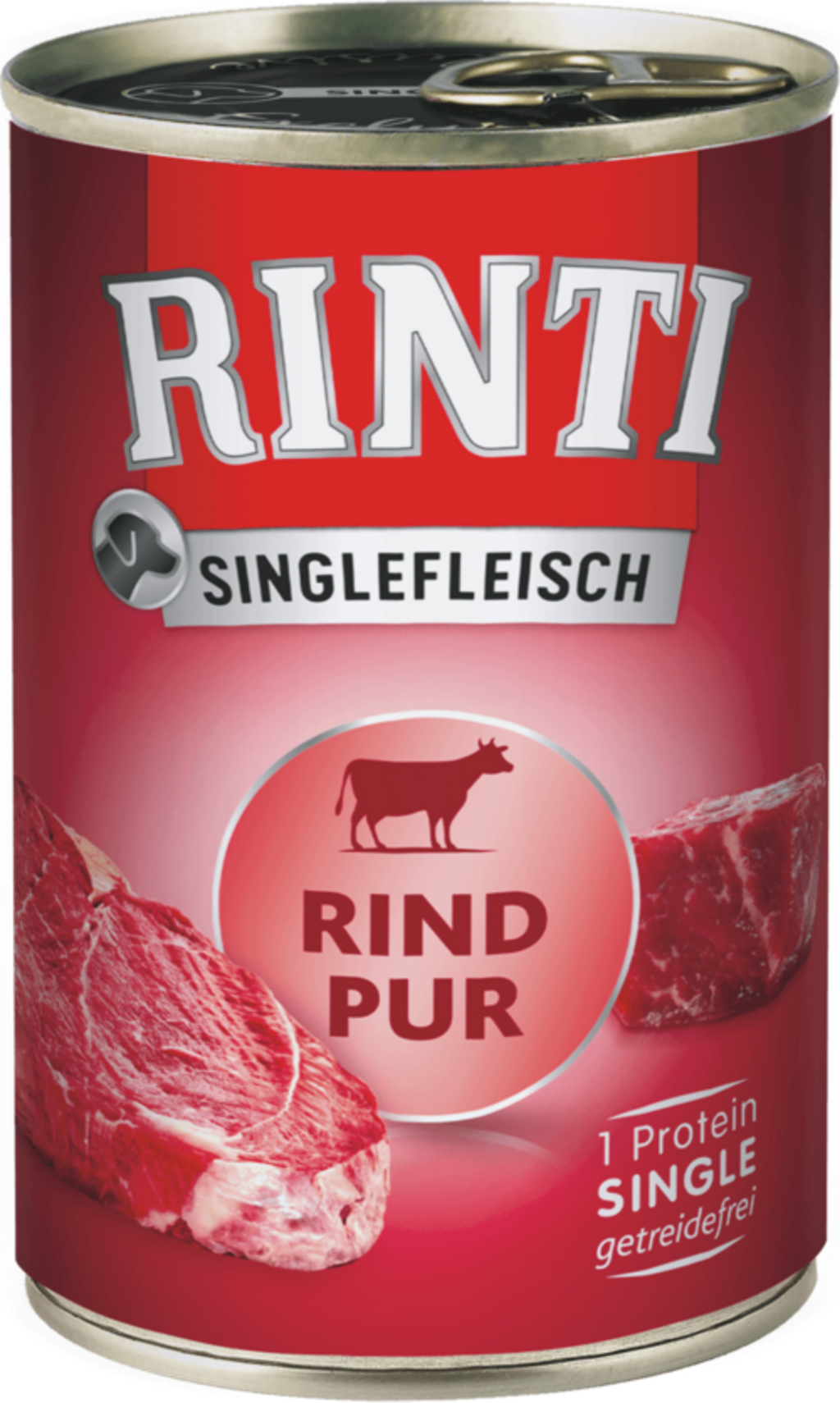 Singlefleisch od značky Rinti je jedinečná zmes bez obsahu sacharidov a s vysokým obsahom bielkovín, zložená z chutného mäsa a jemných vnútorností konkrétneho druhu zvieraťa. Vďaka použitiu jediného zdroja bielkovín možno minimalizovať riziko alergií na krmivo a intolerancií, vďaka čomu je toto delikátne krmivo optimálne vhodné pre psov s potravinovými intoleranciami alebo prieberčivých psov! Chutné krmivo sa zaobíde bez obilnín, sóje, ako aj farbív a konzervačných látok!