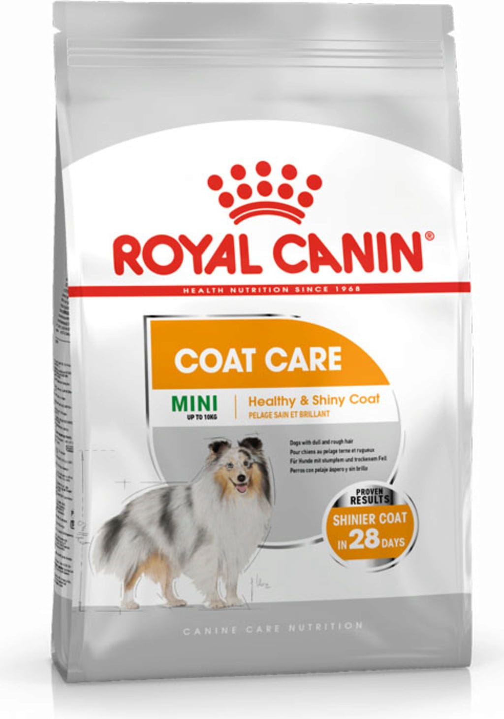 Na základe srsti psa možno posúdiť približný celkový zdravotný stav štvornohého priateľa. Správna výživa môže prispieť ku krásnej a zdravej srsti. COAT CARE Mini od spoločnosti ROYAL CANIN je vyvážené kompletné krmivo, ktoré vyživuje kožu a srsť psa. Toto chutné krmivo je vhodné pre psov s hmotnosťou do 10 kg, ktorí majú matnú a suchú srsť.