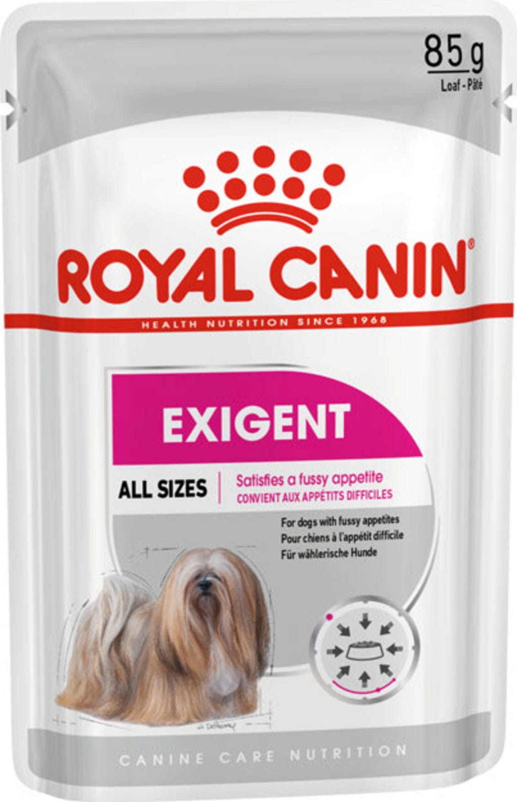 Krmivo ROYAL CANIN® Exigent Mousse je vhodné pre psov všetkých veľkostí a obsahuje živiny, ktoré pes potrebuje pre zdravý život. Pena je jemne uvarená priamo v kapsičke, takže krmivo nestráca nič zo svojej chuti. Vysokokvalitné živiny zaručujú vynikajúcu chuť a konzistenciu, ktorej váš pes jednoducho neodolá.