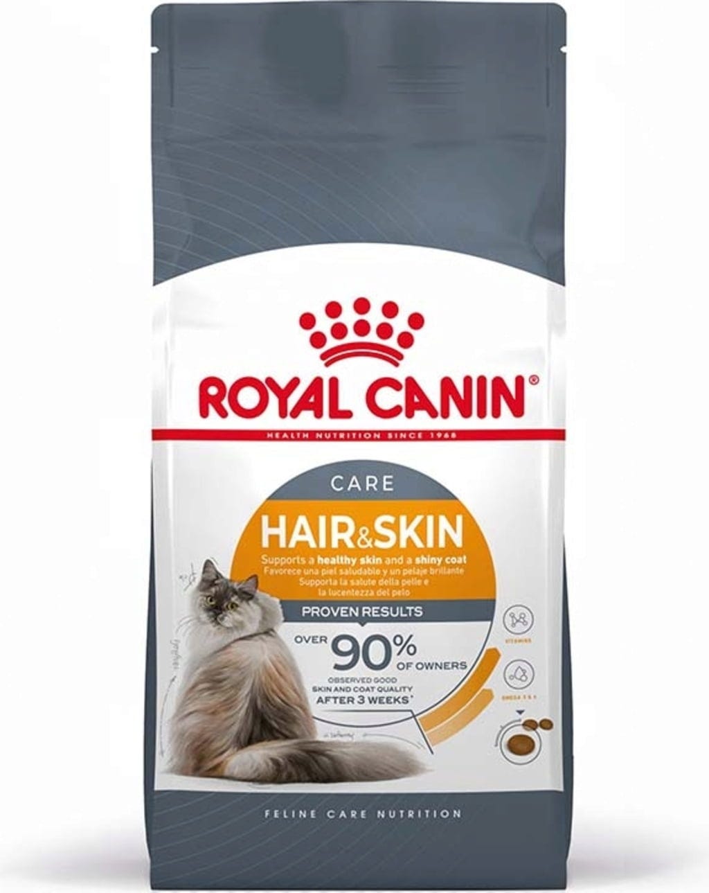 Všetky produkty ROYAL CANIN® prechádzajú rozsiahlym procesom kontroly kvality, aby sa zabezpečila najvyššia kvalita. ROYAL CANIN® Hair & Skin Care poskytuje mačke kompletnú a vyváženú stravu.