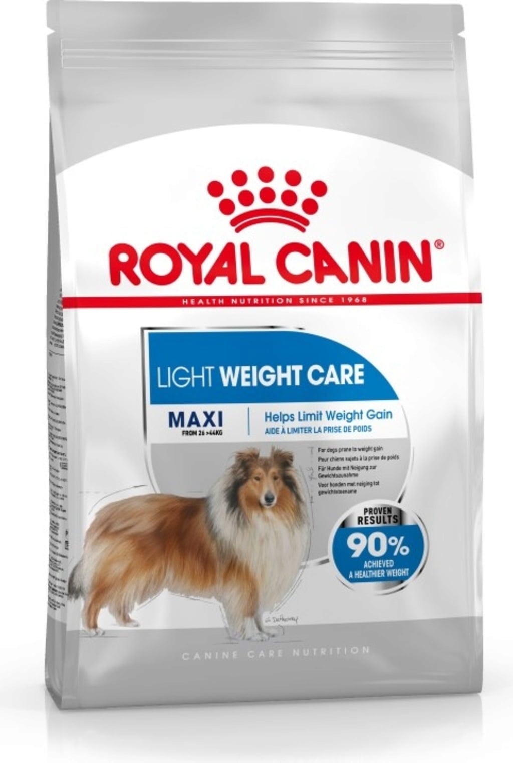 Podľa internej štúdie spoločnosti ROYAL CANIN dosiahlo 90 % psov so sklonom k nadváhe zdravšiu hmotnosť v priebehu 8 týždňov, keď boli kŕmené krmivom ROYAL CANIN LIGHT WEIGHT CARE Maxi.