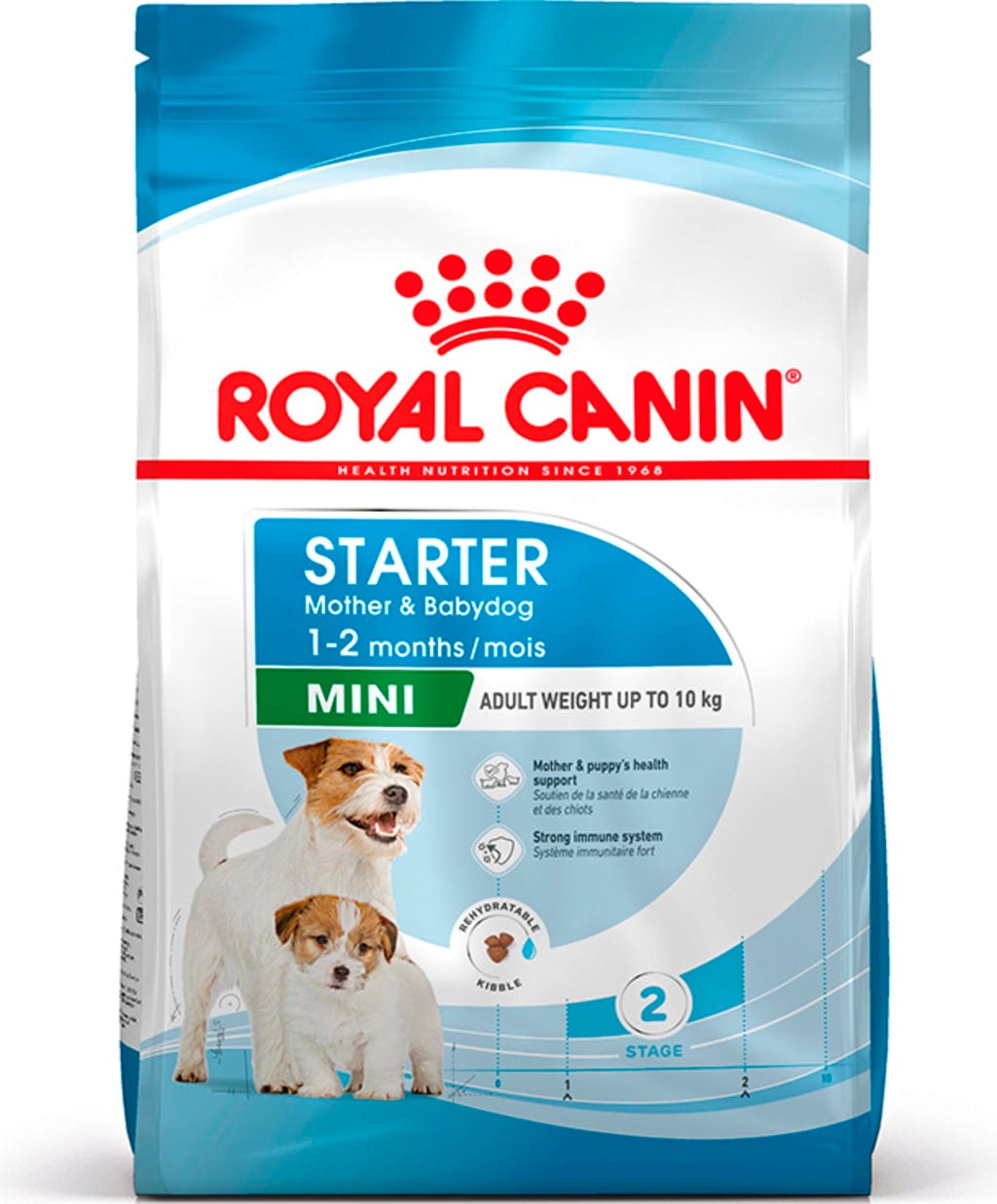 ROYAL CANIN Mini Starter Mother & Babydog podporuje zdravie feniek a ich šteniatok. Ide o špeciálne výživové riešenie prispôsobené vysokým energetickým potrebám feniek na konci gravidity a počas laktácie pre optimálny rast šteniat.