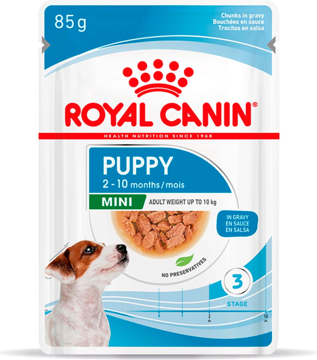 Počas rastovej fázy prežívajú šteňatá zmeny a robia mnohé objavy a postupne sa vyvíja aj obranyschopnosť ich organizmu. Krmivo ROYAL CANIN Mini Puppy v omáčke je vhodné pre šteňatá do 10 mesiacov veku s konečnou hmotnosťou do 10 kg.