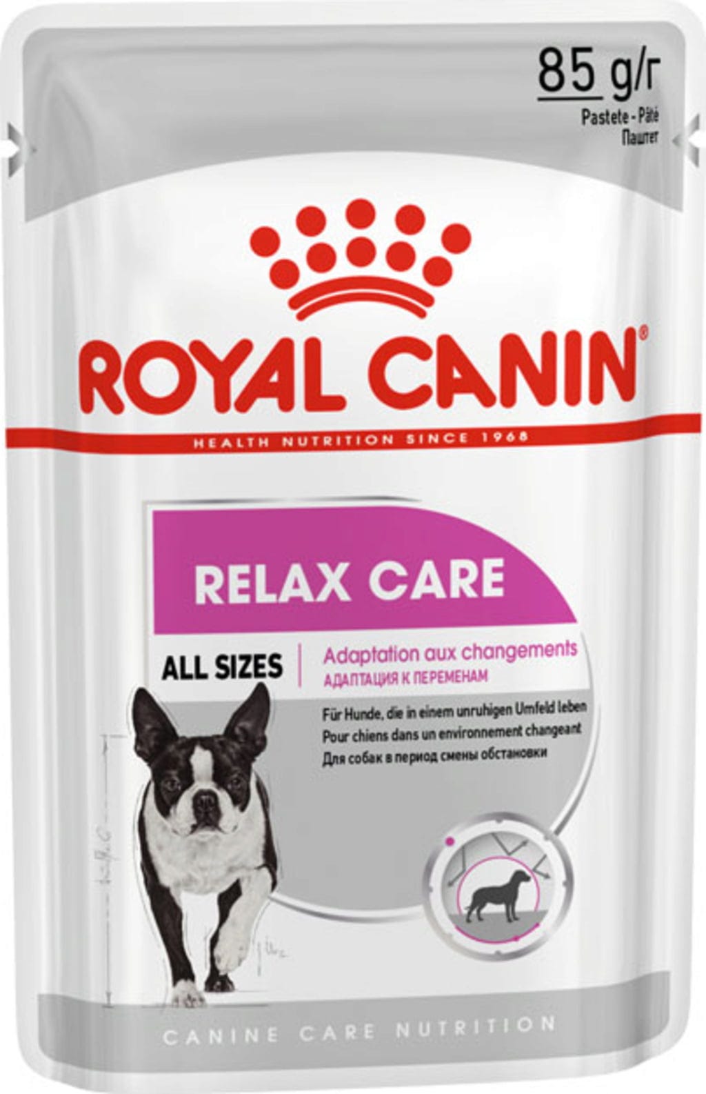 Keď sa zmení každodenná rutina, ako napríklad cestovanie autom, príchod nového člena rodiny alebo sťahovanie, psy môžu prežívať stres. V takýchto prípadoch môže byť pes izolovaný, uzavretý alebo nepokojný. Prispôsobená strava s vysokokvalitnými živinami môže psovi pomôcť lepšie sa prispôsobiť neznámym situáciám a podporiť tak jeho pohodu. Krmivo ROYAL CANIN RELAX CARE Mousse je vhodné pre psov všetkých veľkostí a má veľmi chutné a vyvážené zloženie špeciálne vyvinuté na podporu pohody psa.