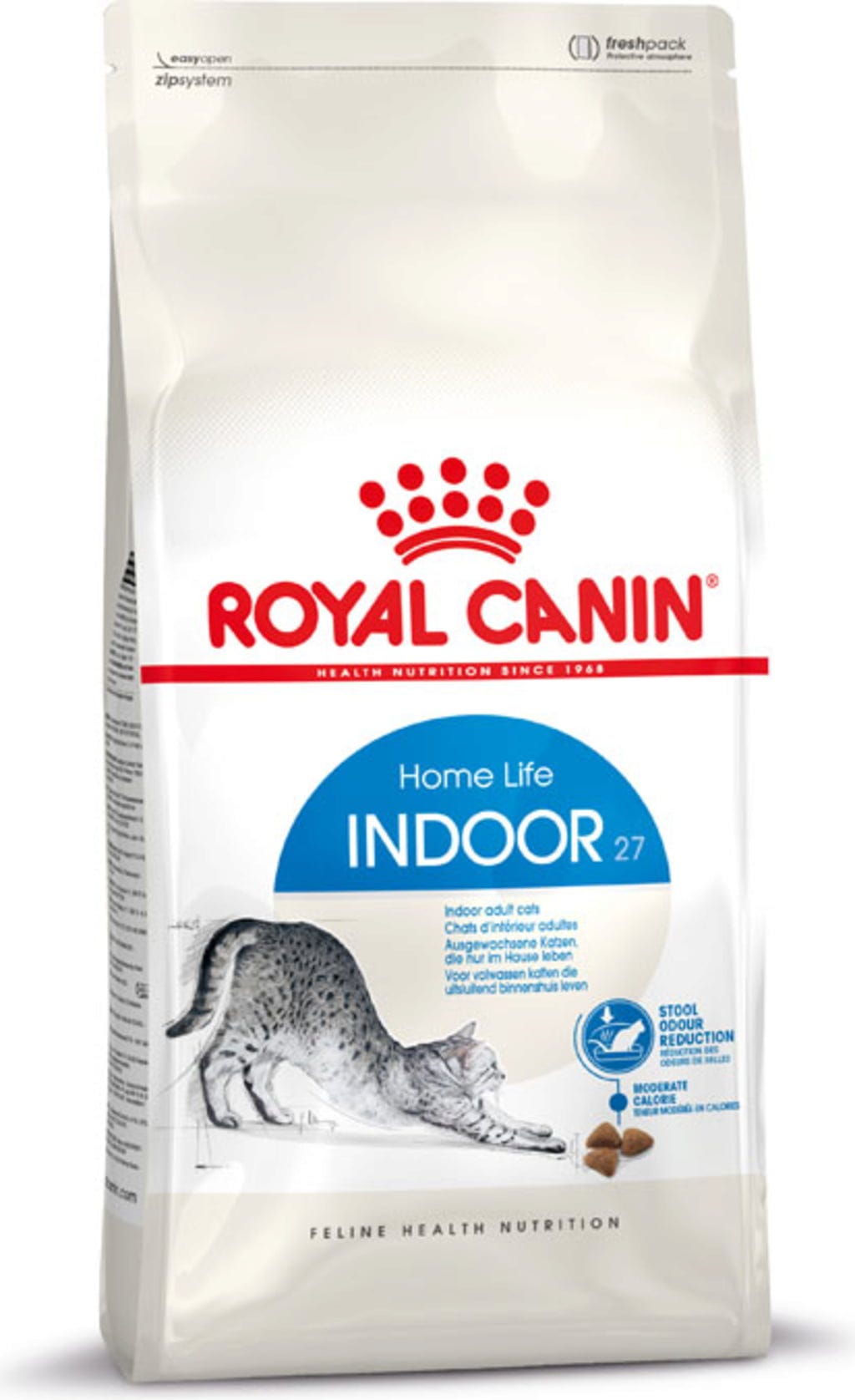 Krmivo pre mačky ROYAL CANIN Indoor 27 je špeciálne vyvinuté tak, aby spĺňalo nutričné požiadavky dospelých mačiek, ktoré žijú len v interiéri. Nedostatok pohybu môže viesť k pomalšiemu tráveniu a zapáchajúcej stolici. Krmivo ROYAL CANIN Indoor 27 obsahuje vysokokvalitné bielkoviny L.I.P. - vybrané, ľahko stráviteľné zdroje bielkovín s vysokou biologickou hodnotou. Tieto bielkoviny tiež pomáhajú znižovať objem stolice a intenzitu zápachu.