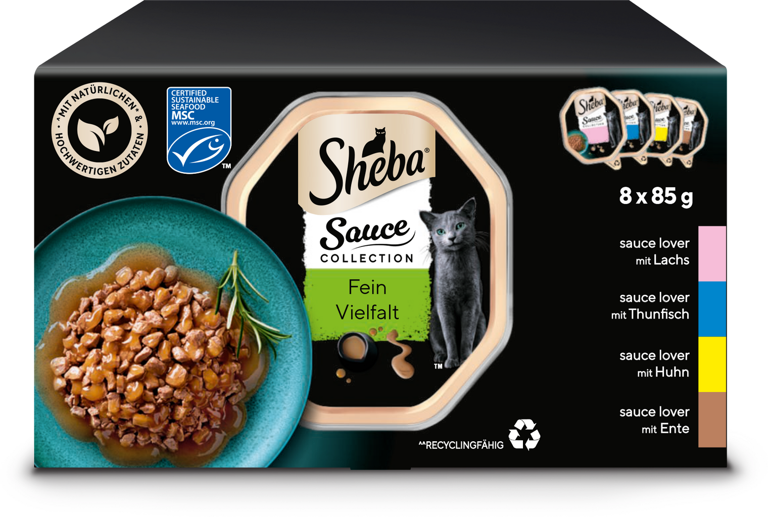 Rad Sauce Lover od spoločnosti Sheba je chutnou pochúťkou pre všetky mačky, ale najmä pre tie, ktoré uprednostňujú mäkšie krmivo. Chutné, jemné kúsky sú zjemnené lahodnou omáčkou, ktorá určite poteší chuťové bunky vášho domáceho maznáčika.