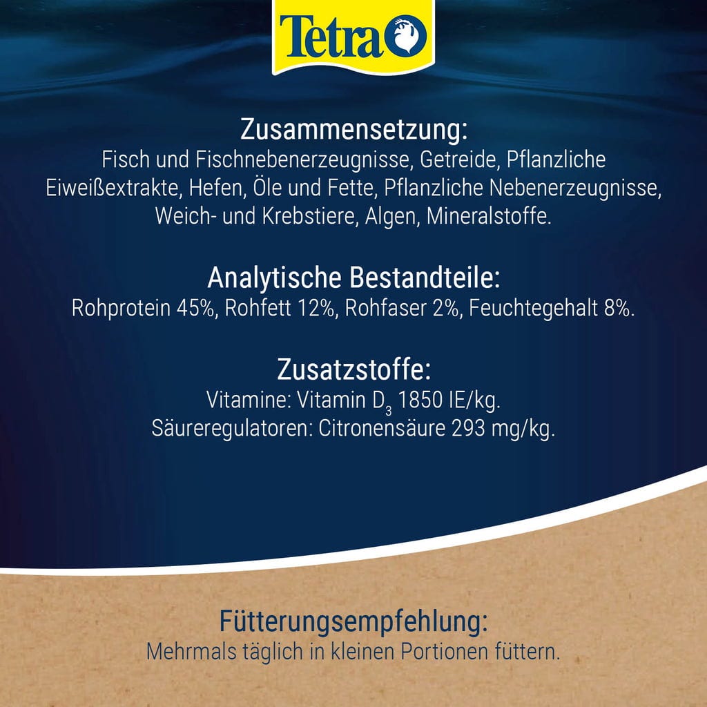 TetraMin Crisps by sa mali podávať viackrát v tak malých dávkach, aby ich boli ryby schopné zjesť bez zvyšku v priebehu niekoľkých minút, a možno ich doplniť pochúťkami, ako sú napríklad doplnkové krmivá Delica. Dátum minimálnej trvanlivosti na obale označuje čas, do ktorého zostanú potraviny pri správnom skladovaní a uzavretí nezkazené. Otvorená nádoba by sa mala podať do 3 mesiacov, pretože vlhkosť, vzduch a svetlo rozkladajú živiny v krmive, a tým zhoršujú jeho zásobu životne dôležitých zložiek.