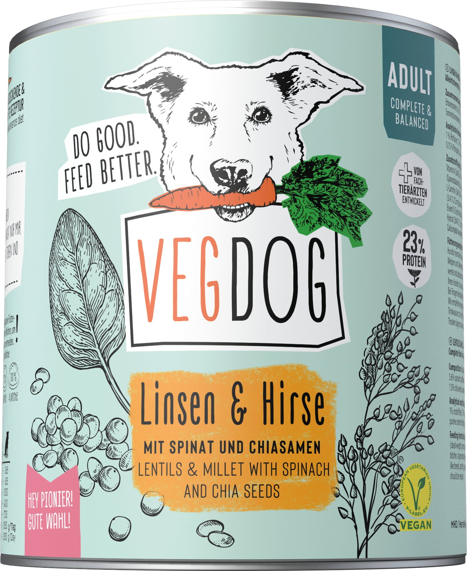 Mokré krmivo Adult od značky VEGDOG zoznamuje psov s novými zaujímavými chuťami! Vegánska receptúra kombinuje sýte ovsené vločky, proteín z hrachu a lupiny a poskytuje dôležité živiny, ktoré psy potrebujú od prvého roku života. Do špeciálnej zmesi boli pridané riasy a ľanové semienka, aby bolo krmivo obohatené o esenciálne omega-3 a omega-6 mastné kyseliny.