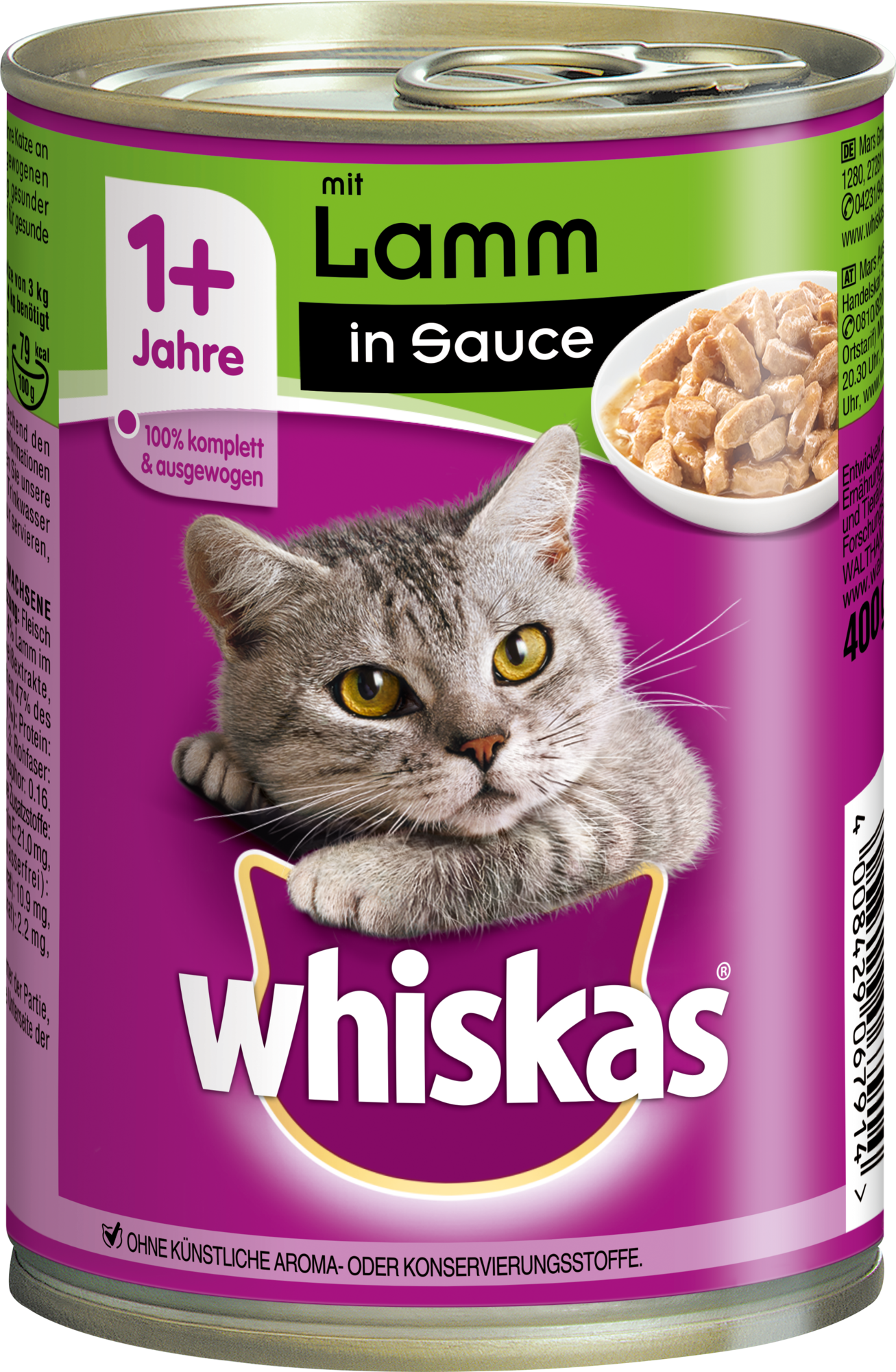 Whiskas 1+ konzerva jahňacie mäso v omáčke, 400 g
