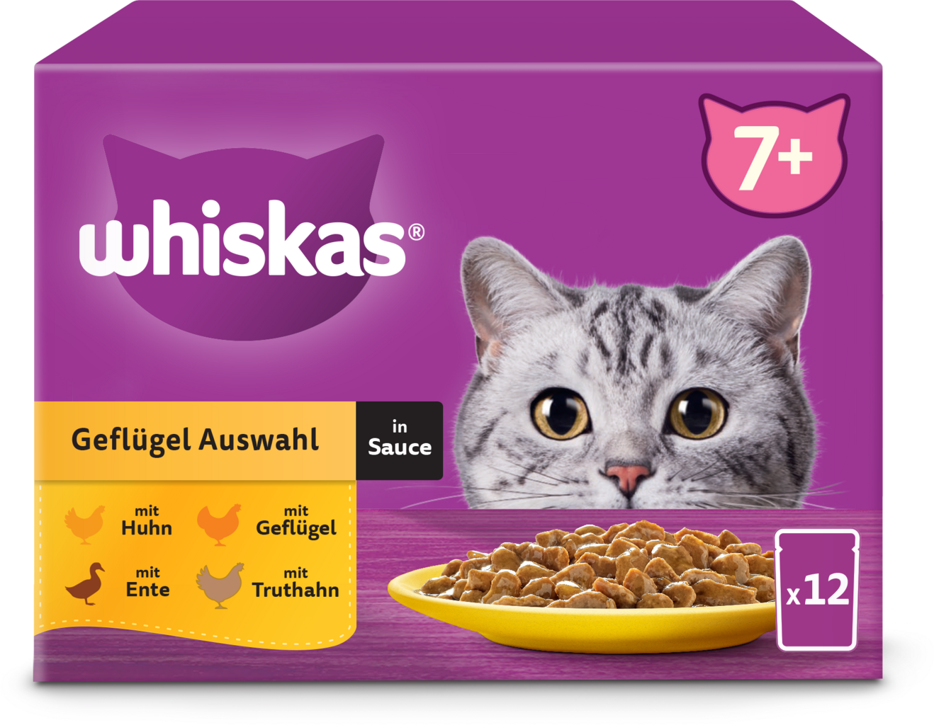 Whiskas Kapsičky "hydinový výber" v omáčke 7+, Multipack 12 x 85 g, 1.020 g