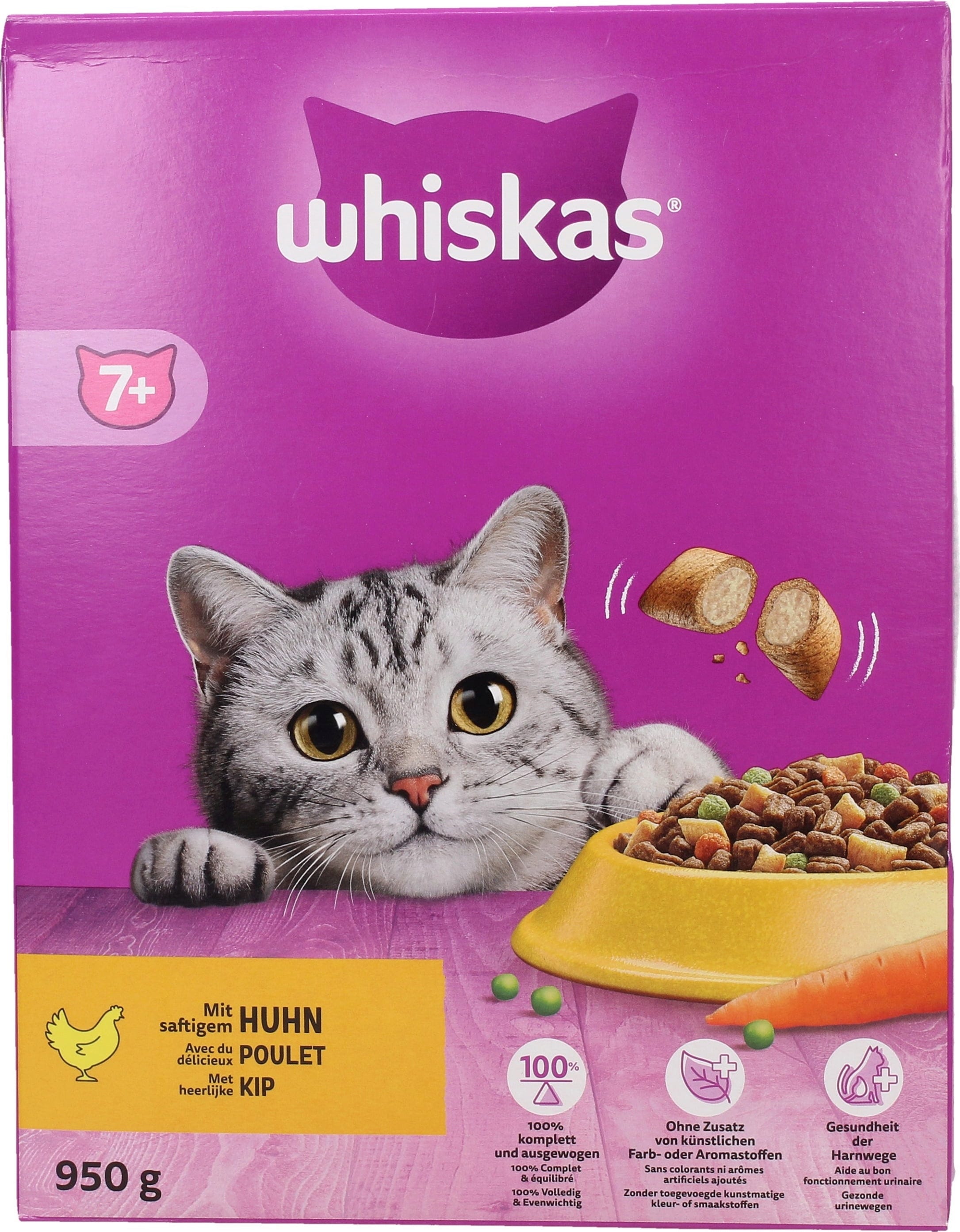 Toto chutné suché krmivo Whiskas je vhodné pre dospelé mačky od 7 rokov. Chutné Knackits majú chrumkavý obal a mäkkú náplň s kuracou príchuťou: táto lahodná kombinácia určite ohúri malých labužníkov. Vyvážené krmivo obsahuje vitamíny a minerály v optimálnom pomere, aby vaša mačka bola dlho plná energie a fit! Kontrolovaný obsah minerálov má pozitívny vplyv aj na zdravie močových ciest.