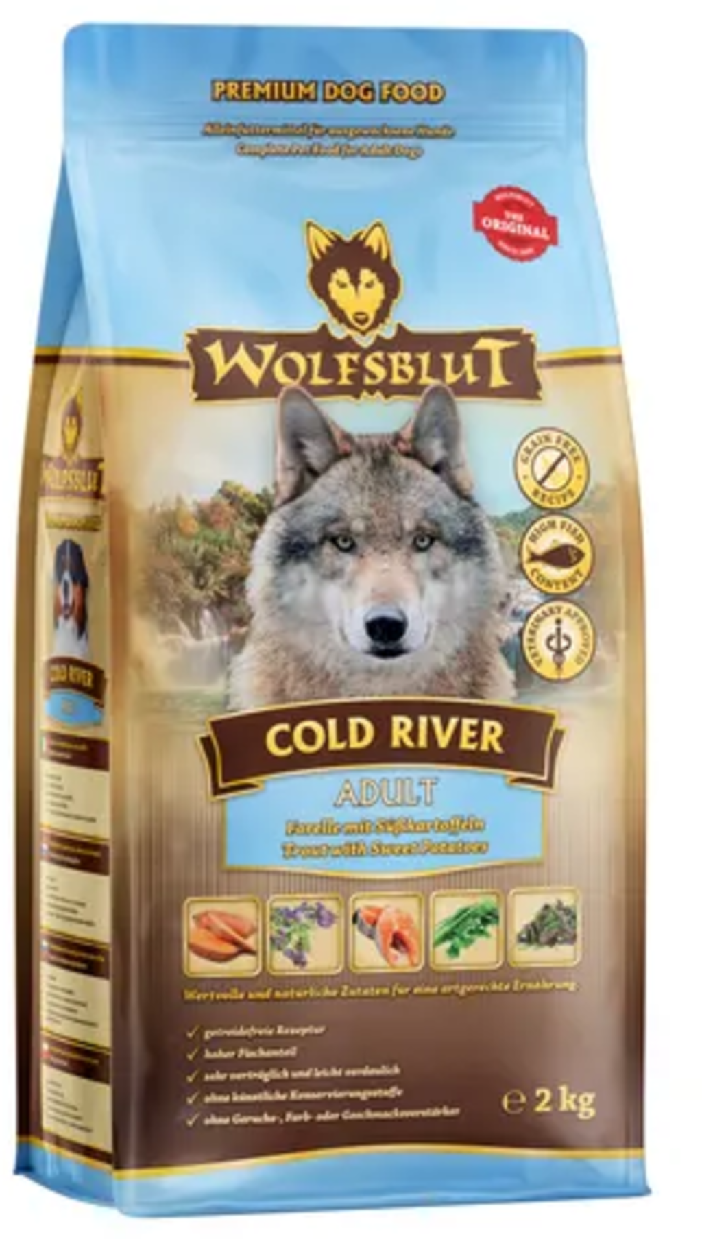 WOLFSBLUT Granuly so pstruhom a sladkými zemiakmi Cold River Adult, 2 kg