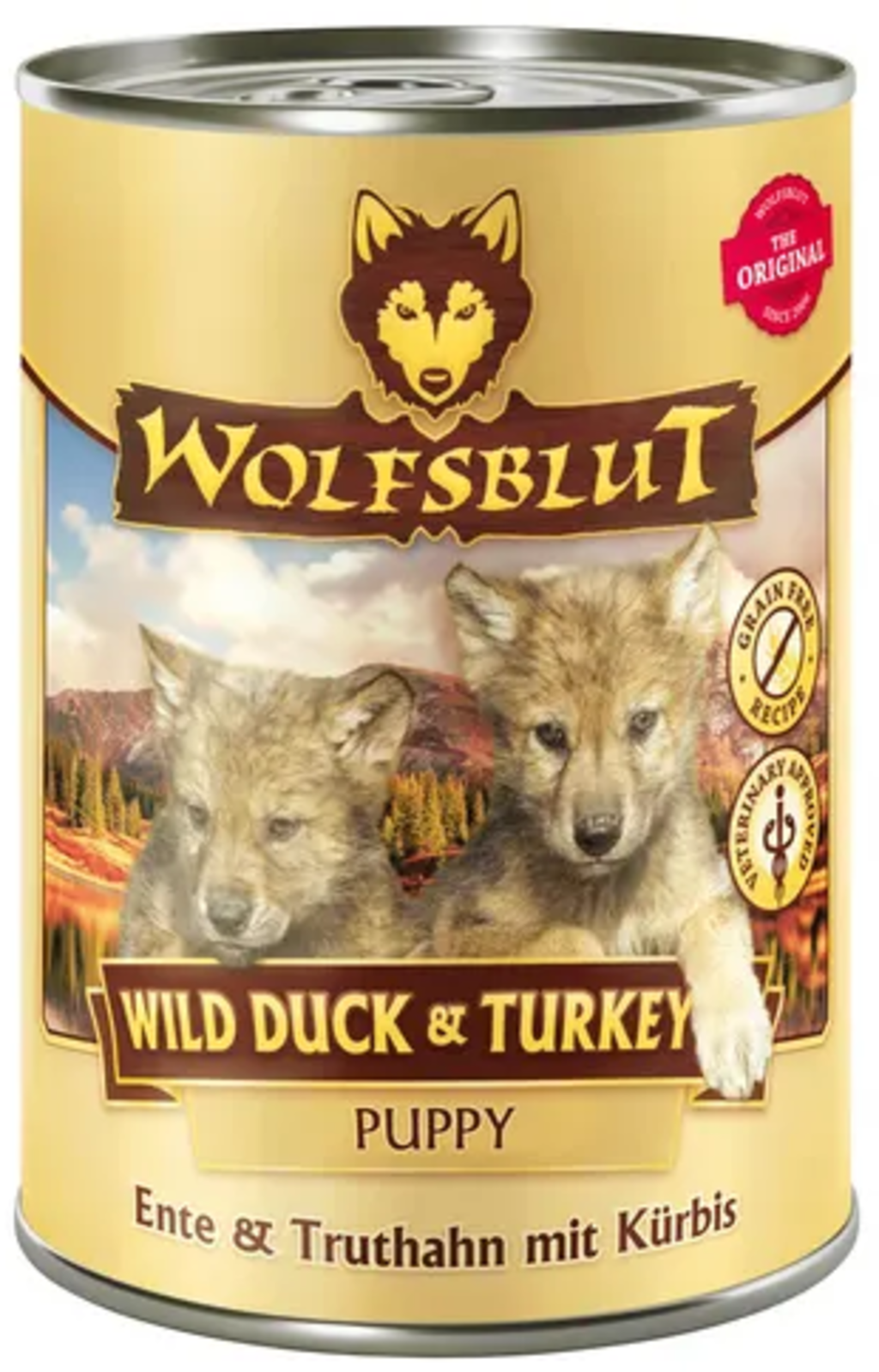 WOLFSBLUT Mokré krmivo s morčacím a kačacím mäsom Puppy, 395 g